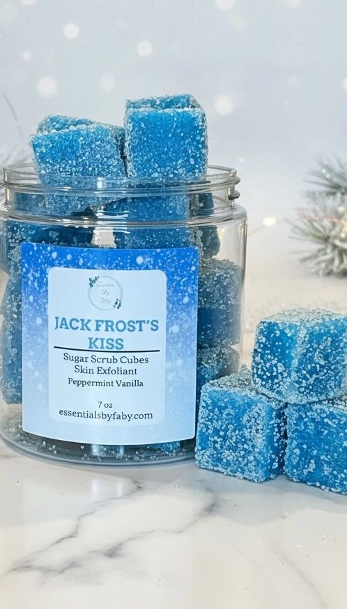 A refreshing blend of cool peppermint swirled with soft, creamy vanilla. These sugar scrub cubes gently exfoliate while leaving your skin feeling smooth, nourished, and lightly kissed with a crisp winter sweetness. The perfect balance of cozy and cool—just like a frosty winter morning.